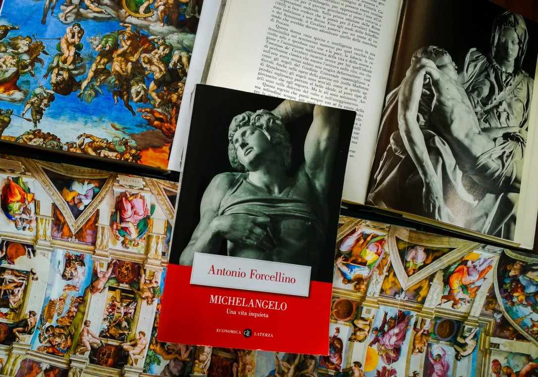 Antonio Forcellino, ne “Michelangelo. Una vita inquieta“, edito da Laterza Editori, narra della vita di messer Michelangelo di Ludovico di Leonardo Buonarroti Simoni, al secolo Michelangelo Buonarroti.