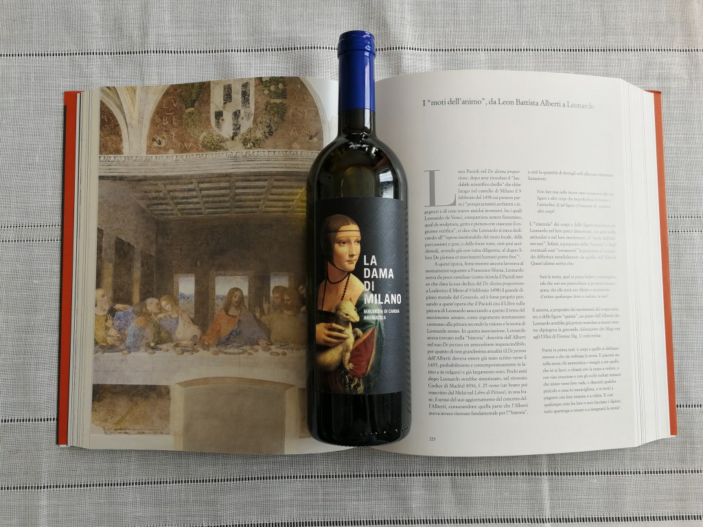 Ma cosa rimane oggi di questa vigna? Nel 2007, alcuni esperti di DNA della vite, mediante scavi manuali, hanno avviato le ricerche dei residui biologici vivi della vigna originale e il loro ritrovamento ha permesso i reimpianto della stessa vite di Leonardo, la Malvasia di Candia aromatica. Il progetto ha portato alla prima vendemmia di questa uva nel 2018, dalla quale è nata La Malvasia di Milano e, successivamente, il vino La dama di Milano (in foto). È pertanto possibile assaggiare lo stesso vino che beveva il grande maestro fiorentino, provando la sensazione di attraversare letteralmente la porta del tempo.